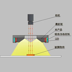 平面無影光采用獨(dú)特的照射結(jié)構(gòu),從LED發(fā)出的光均勻地擴(kuò)散照射,同時采用柔性線路板以0度照射角度固定,經(jīng)折射后低角度照射在被測物體上,以強(qiáng)化表面特征(如激光浮印或蝕刻標(biāo)識)或提高表面缺陷的對比度。