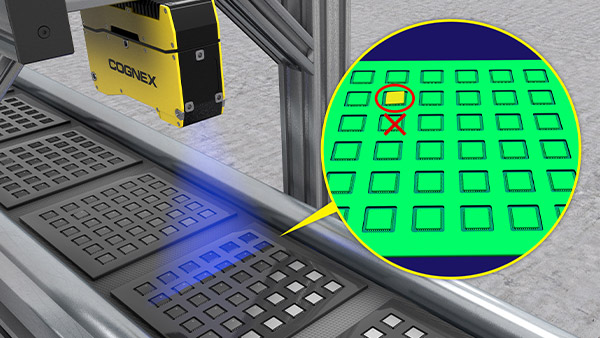 通過測(cè)量位置和平整度判斷芯片是否已正確地位于托盤中