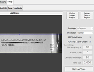“讀取 ID 碼”命令用于讀取智能郵件條碼。其值將用于與控制器中的信息進行對比以確保代碼合格,還將用于創(chuàng)建文件名以存儲智能郵件條碼圖像。然后使用“校驗 ID”命令生成智能郵件條碼驗證指標。所有與保證智能郵件條碼符合 USPS 要求相關(guān)的參數(shù)都會被驗證。然后視覺程序?qū)⑦@些數(shù)字與 USPS IMB 規(guī)格和警戒參數(shù)進行對比,確定該代碼是否合格、合格但超出了警告限制,或是不合格。然后代碼值被發(fā)送到用戶界面上,在這里根據(jù)控制器數(shù)據(jù)庫進行核對,從而保證打印出來的是正確的代碼。