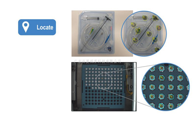ViDi Blue-Locate 可通過從注釋圖像中學習,找到復雜的特征和對象。自學算法可以找到零件、計數(shù)托盤上的半透明玻璃醫(yī)用藥瓶,并對試劑盒和包裝進行質量控制檢查。